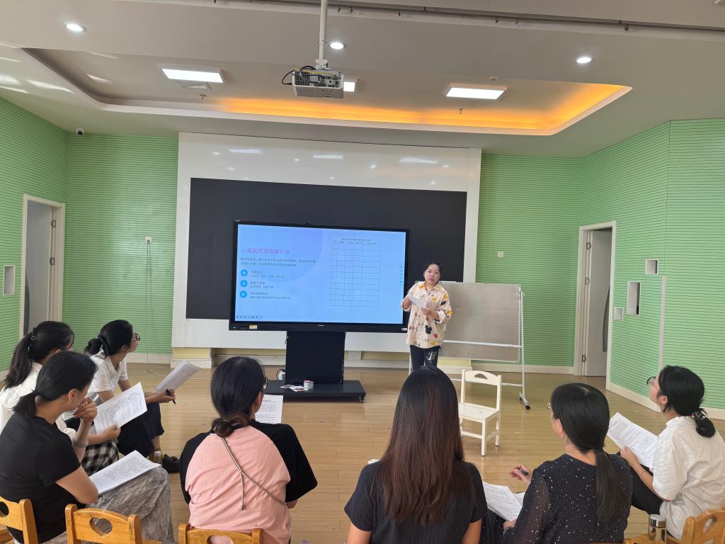 本次活动聚焦两大目标:一是系统梳理小果园中可利用的秋季自然资源,评估现有游戏资源的实际使用情况;二是通过观察幼儿户外游戏实录视频,精准捕捉幼儿的兴趣偏好,明确游戏优化的具体方向。在视频观摩环节,教师们围绕“幼儿游戏状态、材料选择倾向、兴趣聚焦点及自然资源利用方式”四个维度展开分组研讨,深入交流观点。